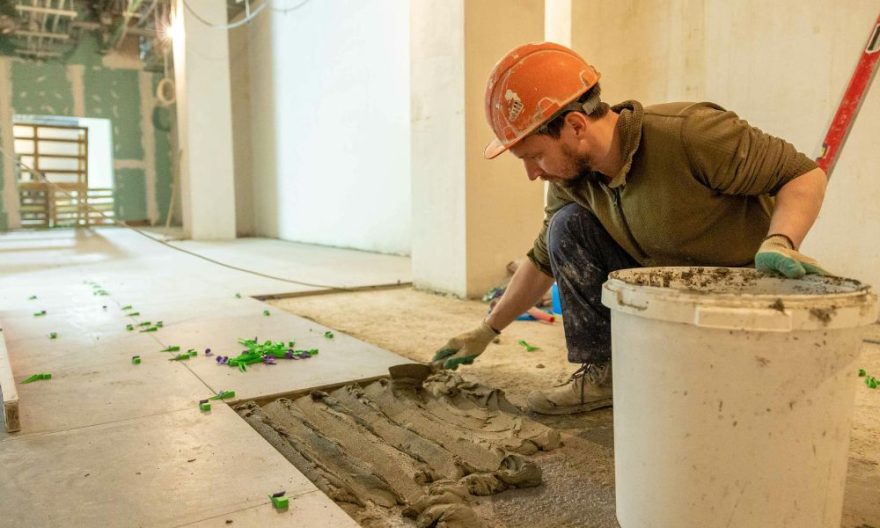 Si le sol est recouvert d’un revêtement ancien comme du lino ou un carrelage préexistant, il est nécessaire de l’enlever ou, à défaut, de s’assurer qu’il est bien stable et non friable. Dans certains cas, un ponçage ou un décapage chimique est requis pour obtenir une surface propre et uniforme.